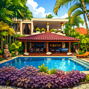 Salah satu fasilitas utama adalah kolam renang pribadi, yang menjadi daya tarik utama bagi hunian di Bali. Kolam renang dirancang dengan ukuran yang ideal, dikelilingi taman hijau yang asri, menciptakan suasana relaksasi yang nyaman dan eksklusif.