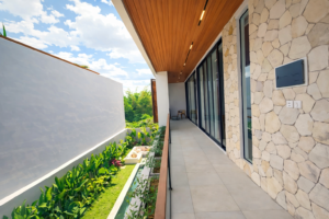 Lingkungan villa dirancang dengan sistem satu gerbang atau one gate system yang memberikan rasa aman dan privasi lebih bagi penghuni. Hal ini menjadi nilai tambah bagi keluarga maupun investor yang ingin menyewakan villa kepada wisatawan jangka pendek maupun panjang.