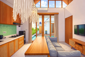 Salah satu keunggulan utama Sunset Village adalah tata ruang yang efisien dan fungsional. Setiap sudut vila dirancang dengan cermat untuk memaksimalkan penggunaan ruang tanpa mengorbankan estetika.